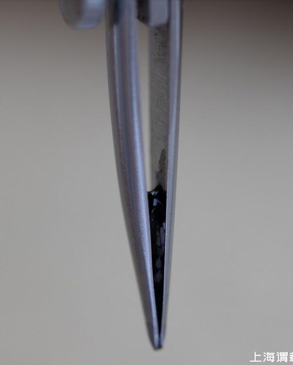 比較簡單的方法是拿小刀片調(diào)整中縫的開縫大小,和筆尖與筆舌間的距離,使更多的墨水能夠到達銥粒這邊,靠重力也能克服最后內(nèi)凹的這點距離。這一步驟俗稱“刀尖”。只要不刮花金屬鍍層,基本上整個過程還是可逆的,就算一次下來效果不滿意也有進一步調(diào)整的余地。比如刀得太寬了,還能捏一捏再讓他緊一點。注意這里我們并不是要把中縫一味地開大,而是調(diào)整到合適的寬度,因為太寬墨水還是會留在中縫里,太窄又無法順利地從筆舌那邊引過來。