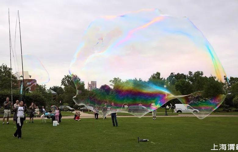 那么,世界上最大的肥皂泡到底有多大呢?目前的吉尼斯世界紀錄是GARY PEARLMAN在2015年創造的,他用巨大的蘸有泡泡溶液的線框成功制造出了一個體積約有96.27立方米的巨大泡泡: