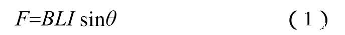 由式(1)可知,F的大小與B、L、I及sinθ均成正比,對于設計好的傳感器,其感應線圈的規格尺寸已固定,B、L可視為常數,而θ為90°,故sinθ=1,因此,F與I成正比關系。