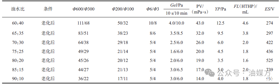 構建的環保非水基鉆井液,適用油/水比范圍寬,抗污染能力強,抗溫達180℃,可用于環保要求嚴格的作業區域。但是難以應對溫度高于180℃井的作業需求,因此,仍需繼續研究抗溫性更強的環保乳化劑來滿足作業需求。
