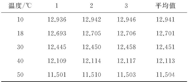 將不等徑U型管內徑以及液位差的測量數據代入式(8)中,計算得到對應溫度下的表面張力系數的測量值。查閱已有文獻,可以得到不同溫度下純凈水表面張力系數的公認值以及數據擬合出的公式α=75.45067-0.13326t-5.26468×10-4t2.實驗測量值與公認值對比列于表3.