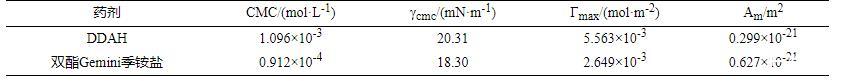 表1 DDAH與雙酯Gemini季銨鹽表面性能計算結果