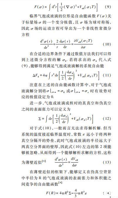 在上述對氣泡動力學研究的理論分析中,標量場σ的真空平均值可以看做序參數,并且系統的自由能函數能夠被定義為