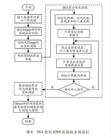 7)將SSA優化后得到的最優權值和閾值參數輸出傳遞至ENN,以最優的SSAENN模型訓練和預測數據。