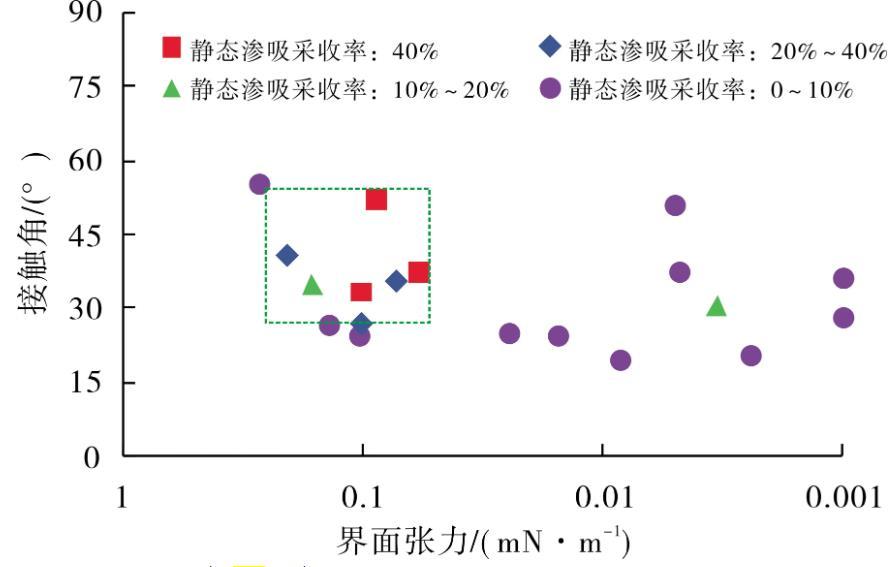 圖3界面張力-潤濕性-靜態(tài)滲吸采收率關系
