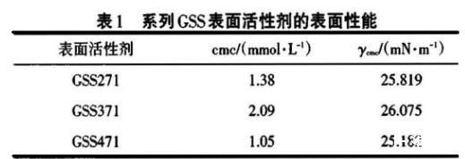 表1系列GSS表面活性劑的表面性能