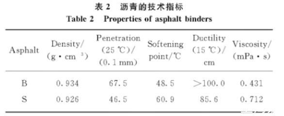 純度1)99.5%的無(wú)水乙醇(分析純);70#基質(zhì)瀝青(B);SBS改性瀝青(S);5種表面活性劑:阿科瑪Cecabase 945(W1)、阿科瑪Cecabase Bio 10(W2)、諾力昂Rediset LQ-1102C(W3)、上海龍孚LYE-WMA(W4)、美德維實(shí)偉克M-1(W5),表面活性劑W1——W5摻量分別為瀝青質(zhì)量的0.4%、0.4%、0.6%、0.6%、0.6%.瀝青的技術(shù)指標(biāo)見(jiàn)表2,其中:黏度采用布式旋轉(zhuǎn)黏度法測(cè)試,取剪切速率為25s-1時(shí)的黏度值;基質(zhì)瀝青、SBS改性瀝青的密度與黏度的測(cè)試溫度分別為135、165℃。