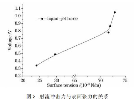 實驗研究了液體表面張力對固壁近旁空泡生長和潰滅過程的影響。通過研究液體表面張力對空泡最大和最小泡半徑的影響,得出表面張力減緩空泡膨脹過程的結論;此外,通過分析不同張力液體中靶材所受射流沖擊力的大小,得出表面張力增加射流沖擊強度,產生較大的空蝕效應的結論。該研究成果不僅可以促進空化研究的深入,從而避免空泡可能帶來的危害,同時也為合理利用空化現象提供參考。