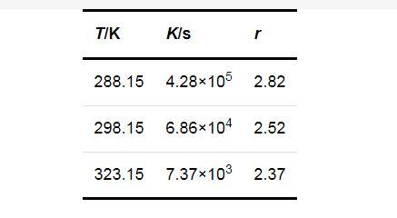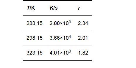 式中:K和r均為方程參數(shù),可由實驗數(shù)據(jù)回歸得出.將圖1的數(shù)據(jù)回歸結(jié)果列于表1.進(jìn)一步說明了過飽和度對成核誘導(dǎo)期的影響在較低的溫度下更為顯著.