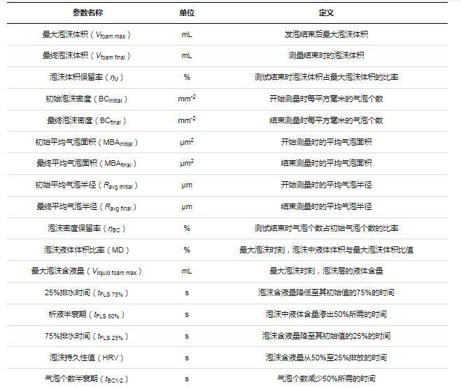 表1泡沫測試的主要參數及其定義