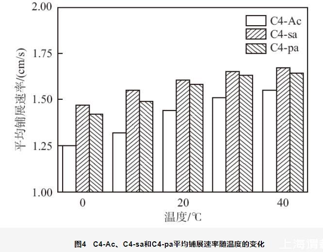 圖4 C4-Ac、C4-sa和C4-pa平均鋪展速率隨溫度的變化
