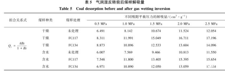 表5氣潤濕反轉前后煤樣解吸量