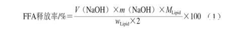 式中:V(NaOH)為消耗NaOH的體積/mL;m(NaOH)為NaOH濃度/(mol/L);wLipid為消化反應中最初的油脂的質量(194 mg);MLipid為中鏈甘油酸酯的摩爾質量(500 g/mol)。