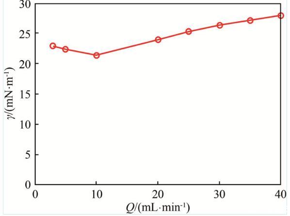 圖4表面張力系數(shù)隨皂液流量的變化