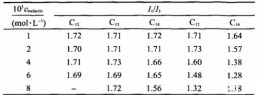 表3表面活性素濃度對(duì)膠束微極性(I1/I3)的影響