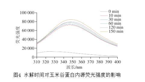 圖4水解時間對玉米谷蛋白內(nèi)源熒光強(qiáng)度的影響