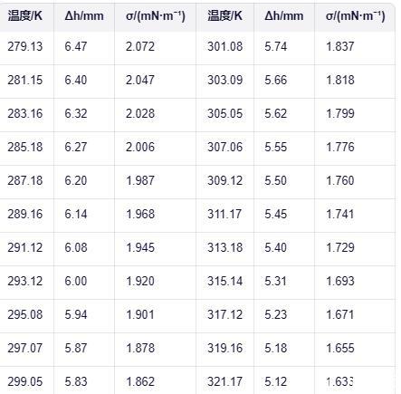 表面張力儀系統(tǒng)測定:溫度范圍內(nèi)甲基九氟丁醚的液相密度與表面張力