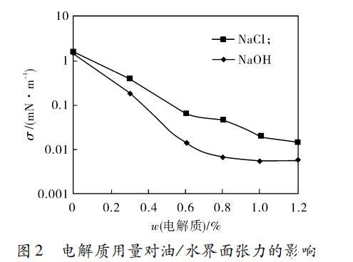 圖2 電解質用量對油/水界面張力的影響
