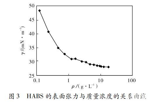 圖3 HABS的表面張力與質量濃度的關系曲線