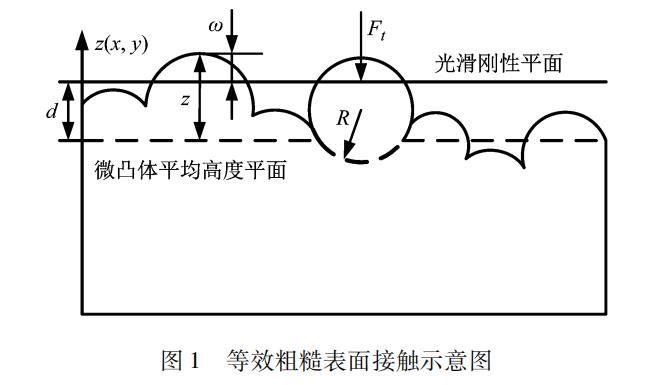 將兩隨機粗糙表面的接觸簡化為一等效粗糙表面與光滑剛性平面的接觸,如圖1所示。圖1中,d為剛性平面到微凸體平均高度平面的距離;z為微凸體的高度;R為微凸體的半徑;Ft為法向載荷。