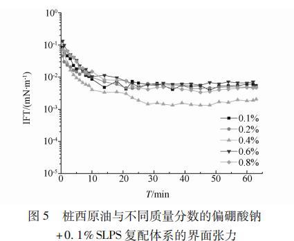 圖5 0.1% SLPS/不同濃度偏硼酸鈉復(fù)配體系與樁西原油的界面張力
