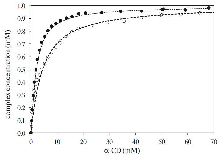表1不同α-CD濃度下α-CD與DPS和Mega-10的1:1包合物的締合常數(Ka)值