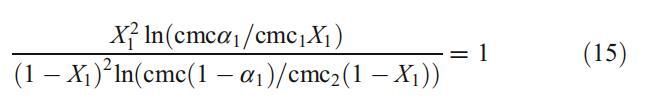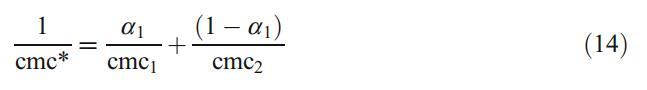 這些結果已通過使用規則溶液理論得到進一步證實,該理論不僅表征了混合膠束中的相互作用參數bmic 12,而且還解釋了與理想的偏差[32]。X1是膠束中DPS的摩爾分數,可根據以下方程式迭代計算: