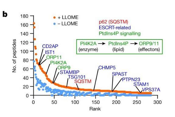 蛋白組學揭示受損溶酶體表面的PI4P信號: