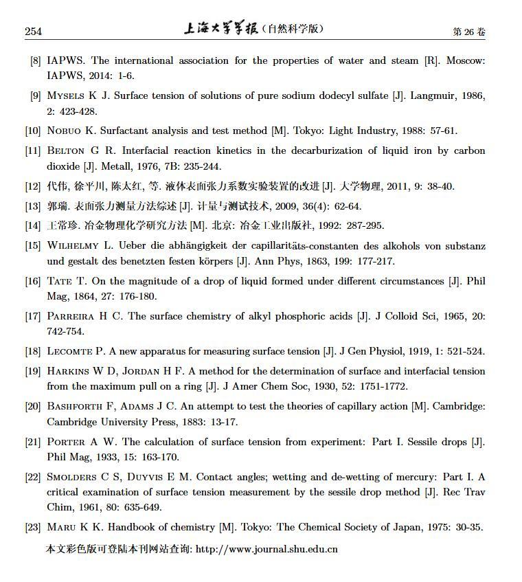 > 新型懸滴實(shí)驗(yàn)系統(tǒng)的研制與二甲基亞砜/甲醇混合物表面張力測(cè)量(二)
