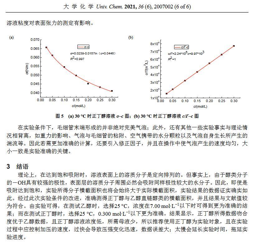 【摘要】:最大氣泡壓力法測定溶液表面張力是物理化學實驗中的一個傳統實驗,由于各種因素的影響,導致學生實驗結果存在較大偏差。本研究通過濃度、溫度等作為變量進行實驗條件探索而得到的結果與文獻值較為吻合。