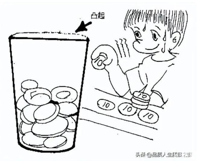 表面張力的實驗:這個實驗,也可以說是一個關于表面張力的小游戲。先找一個朋友和你一起來進行這個游戲,然后準備一杯水(把水加到杯子的邊緣處,目視水至杯口齊平處),16枚1元的硬幣(也可以更多)。然后是這個游戲的規則,和朋友每人一次向杯子里輪流投放硬幣,每次投放硬幣數沒有限制,可以一次放進1枚,可以2或3枚,或者更多,直到誰先把水溢出杯子為止。投放硬幣的時候用拇指和食指捏住硬幣輕輕的放進盛滿水的杯子。本人最多一次投放了16枚1元硬幣。呵呵,好的大家去試試吧。
