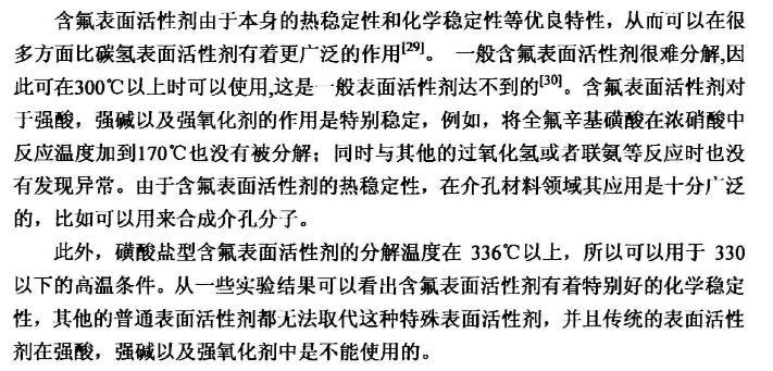 【摘要】:本論文首先對新型含氟表面活性劑的特性,應(yīng)用領(lǐng)域,國內(nèi)外研究進展進行了全面的綜述。含氟表面活性劑是目前最受青睞的特種表面活性劑,相比于傳統(tǒng)的碳氫表面活性劑,含氟表面活性劑的用量少,降低水溶液表面張力的作用強,同時可以跟其它表面活性劑起到很好的復(fù)配效果,可以應(yīng)用于消防、鉻霧抑制劑、造紙、冶金、起泡與消泡劑的合成等很多領(lǐng)域。