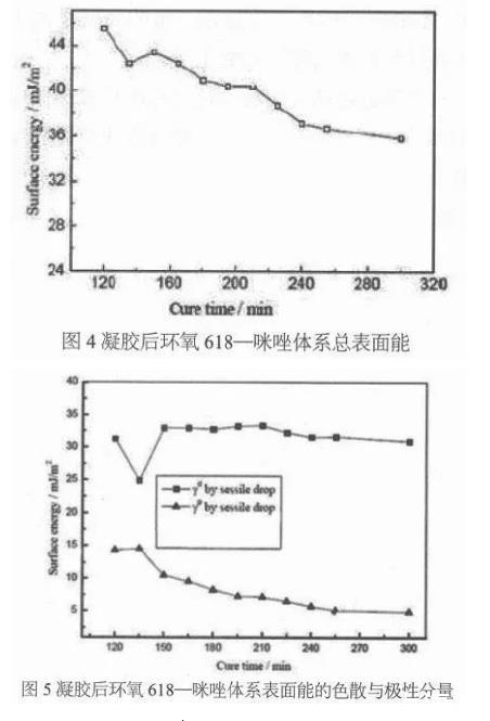 因此作者推斷環氧618-咪唑體系固化反應120min之后表面能極性分量的降低是由于羥基關能團和環氧官能團的變化引起。