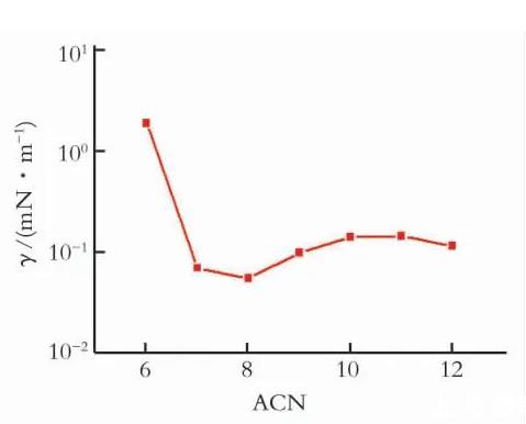圖2 0.1%C16ESB與不同鏈長正構烷烴間界面張力穩態值